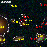 Object #498 x,y = (2183, 3048) RA, Dec = (01:37:26.400, -8:26:48.84) = (24.36000, -8.44690) BPZ = 0.581 [0.428--0.706] type = 6.20 (Sbc_B10 - Scd_B10) chisq2 = 0.18 ODDS = 0.64 z_cluster = 0.566